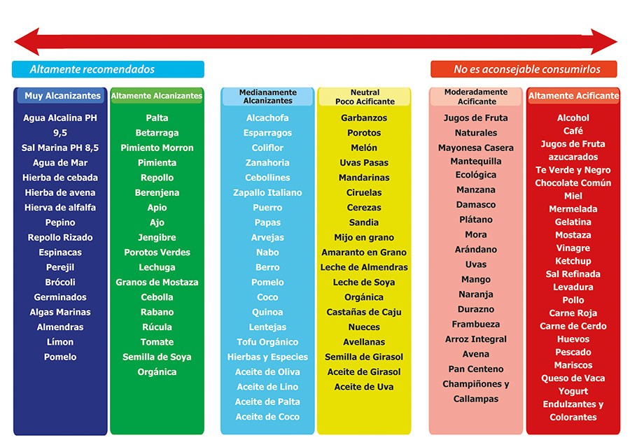 Av detta foljer att vi maste vara forsiktiga nar det galler alkalinisatorernas bidrag till var kropp genom maten vi ater och forsoker undvika forsurande livsmedel och situationer. En lang tid med den sura kroppen ar densamma som korrosion, detta skulle korrodera vavnader, vener och artarer. Nar pH blir surt finns det syrebrist, vilket orsakar skadliga anaeroba mikroformer, bildning av bakterier, svampar och virus som skapas.